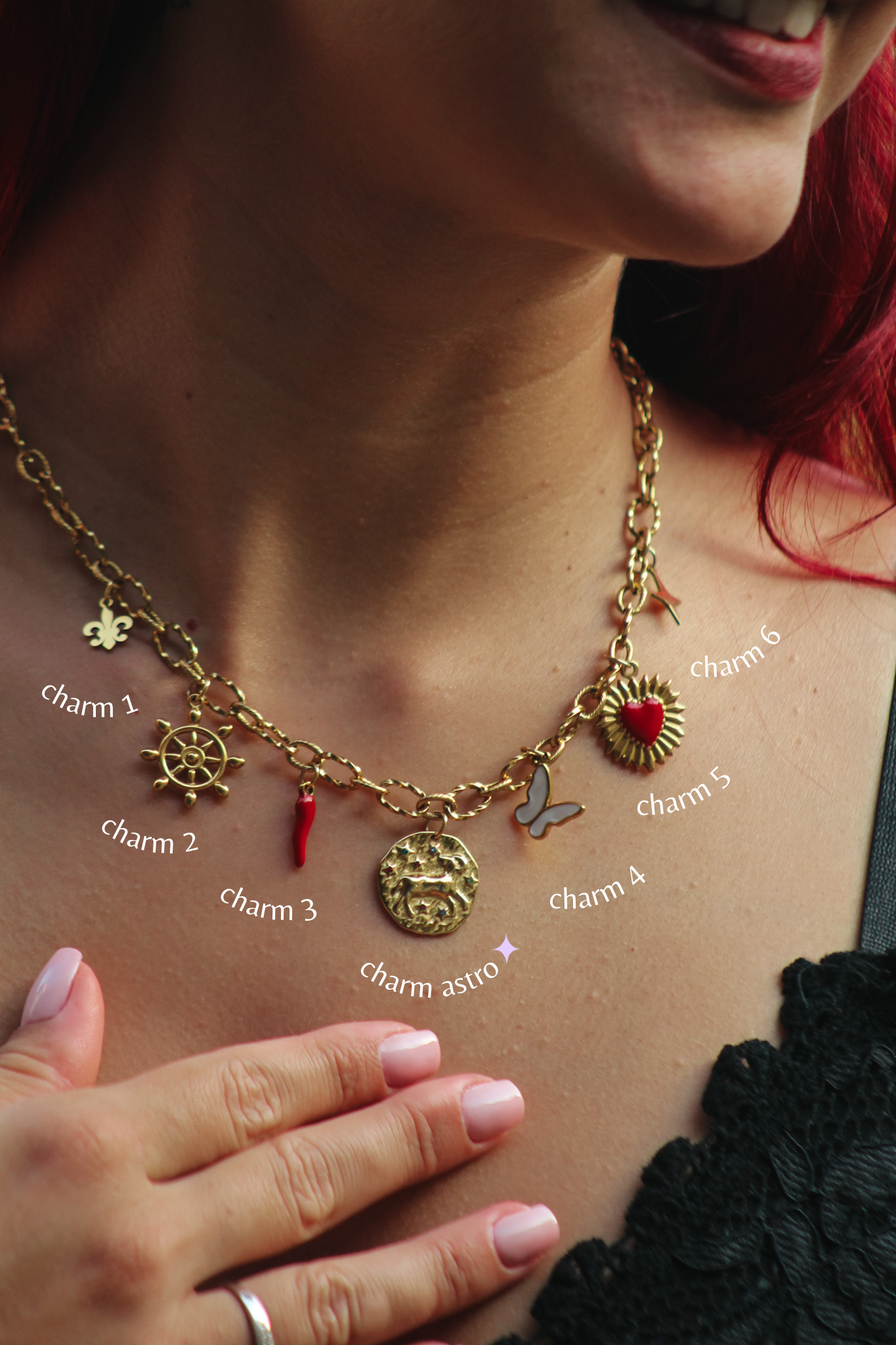 Choisis 6 charms qui reflètent tes traits de caractère et compléte ta création avec un médaillon principal de ton signe astro 🪐